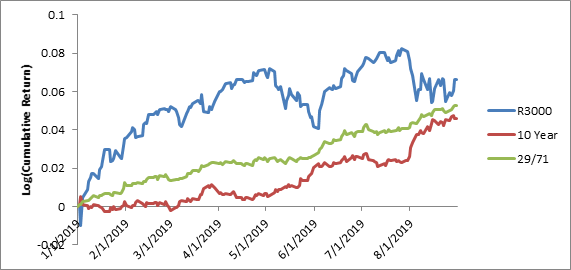 Log Cumulative Returns: Jan – Aug 2019